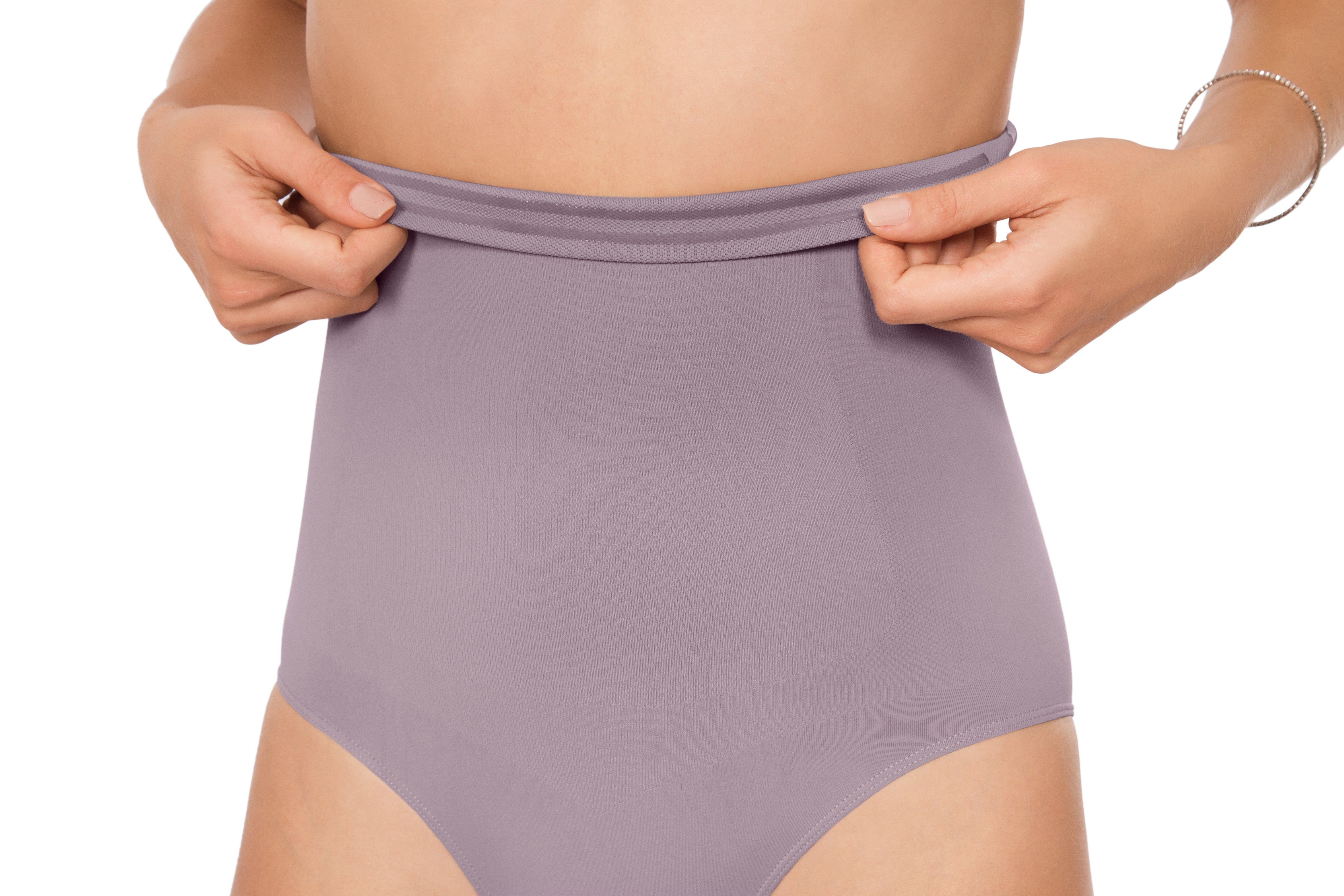 This has different points of compression to adhere to the feminine contours. It shapes up without tightening, corrects small imperfection and localized fat. Microfiber and spandex ensures total comfort as well as the exclusive hydrophillic treatment that keeps the body dry. The piece does not roll down.